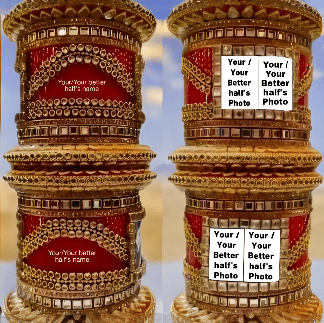 Introducing our Custom Name Chuda, a traditional bangle set with a modern, personalized twist. Whether you’re dressing up for a wedding, festival, or special celebration, this set lets you add a personal touch by including your photo and glitter-written name right on the bangles.