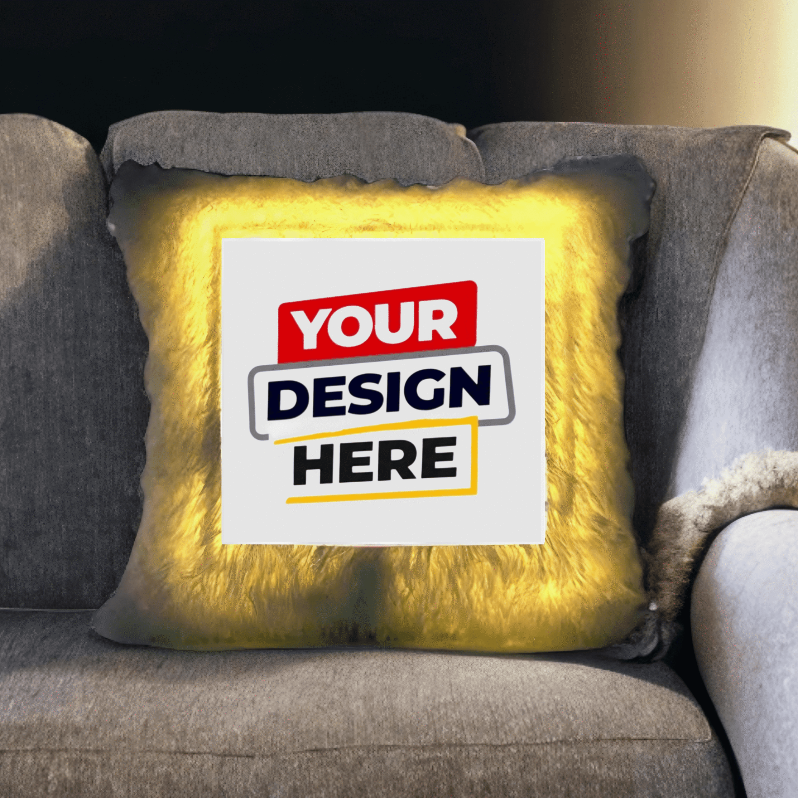 This LED Personalized Cushion is the ultimate mix of cozy and creative! With a soft white furry exterior and your custom design printed on the front, it becomes even more magical when lit from within by a warm white LED light.