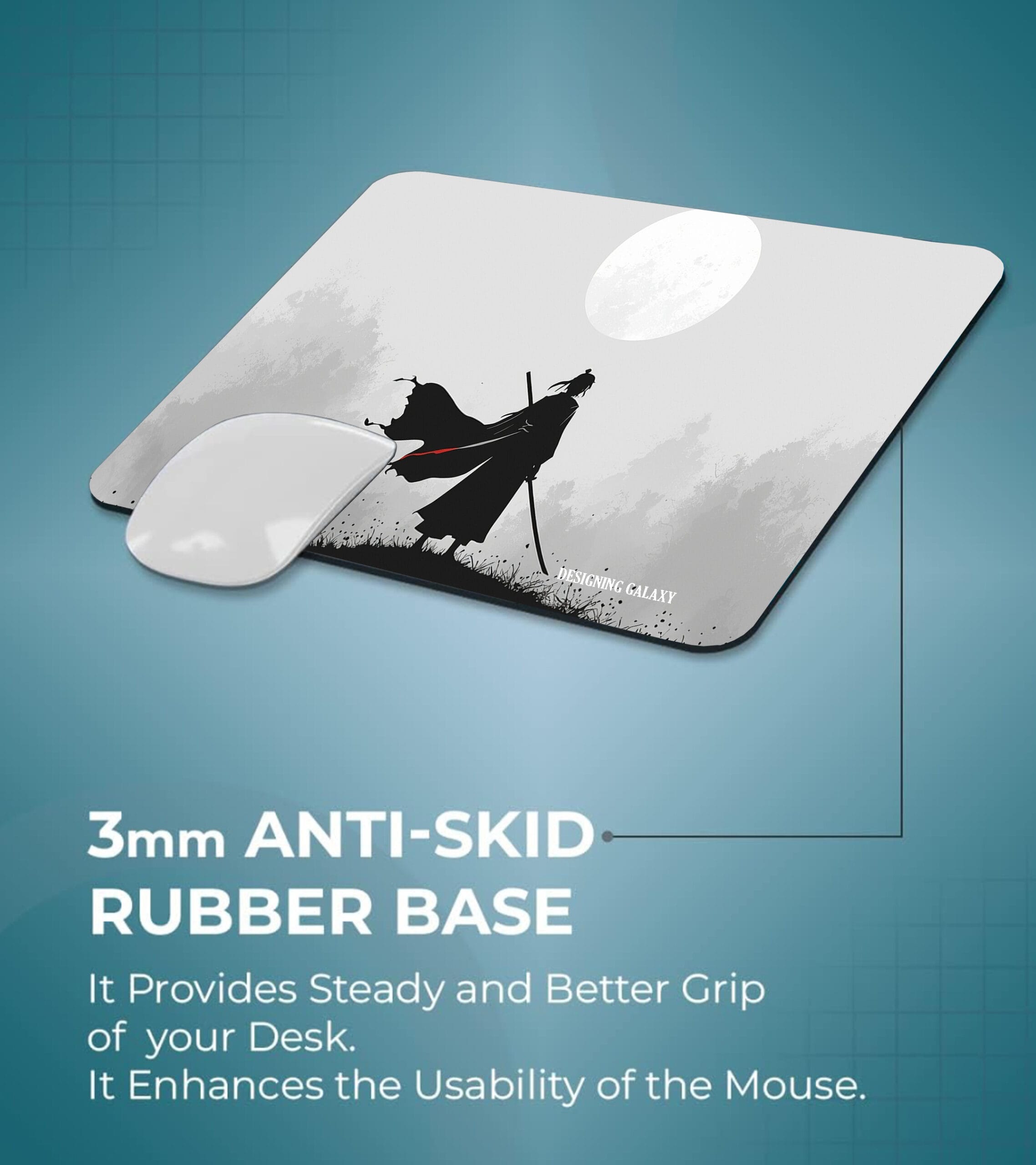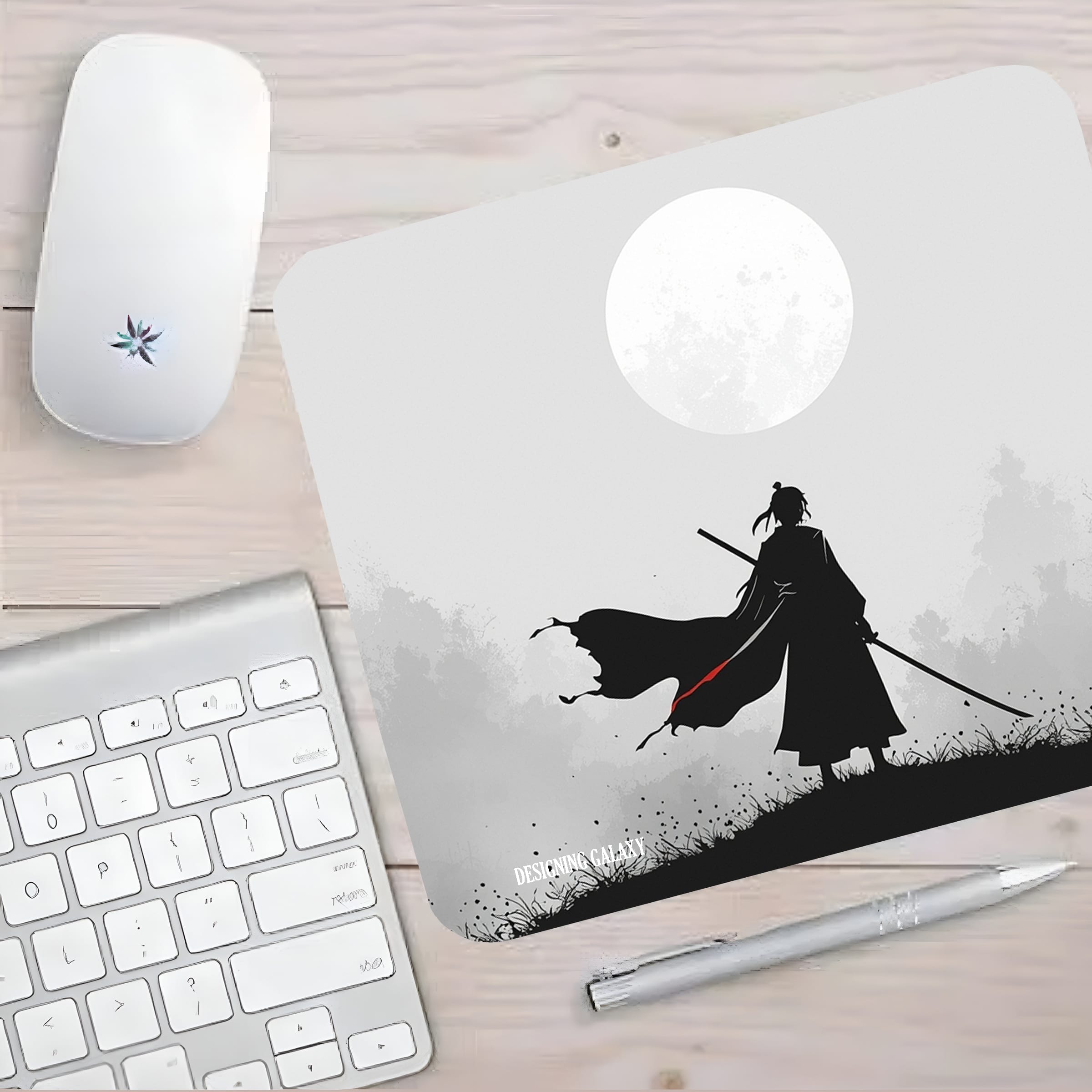 Add focus and character to your desk with our Samurai Mousepad, designed for both productivity and performance. Featuring the same striking samurai artwork as our XL desk mat, this compact mousepad is perfect for smaller desks, laptop setups, offices, and everyday use.