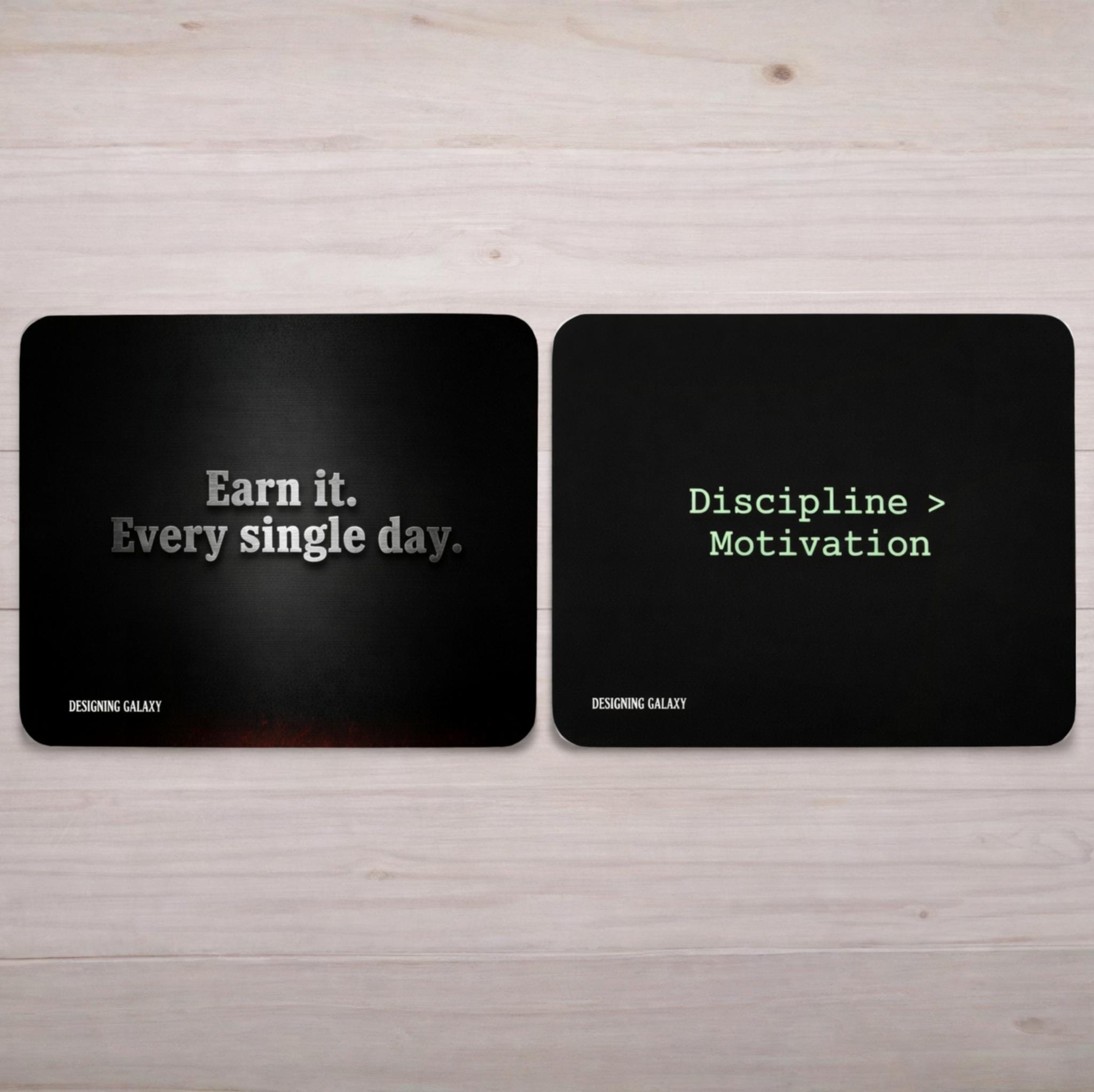 • What’s Included: 2x Mousepads (“Discipline > Motivation” & “Earn It Every Single Day”)
