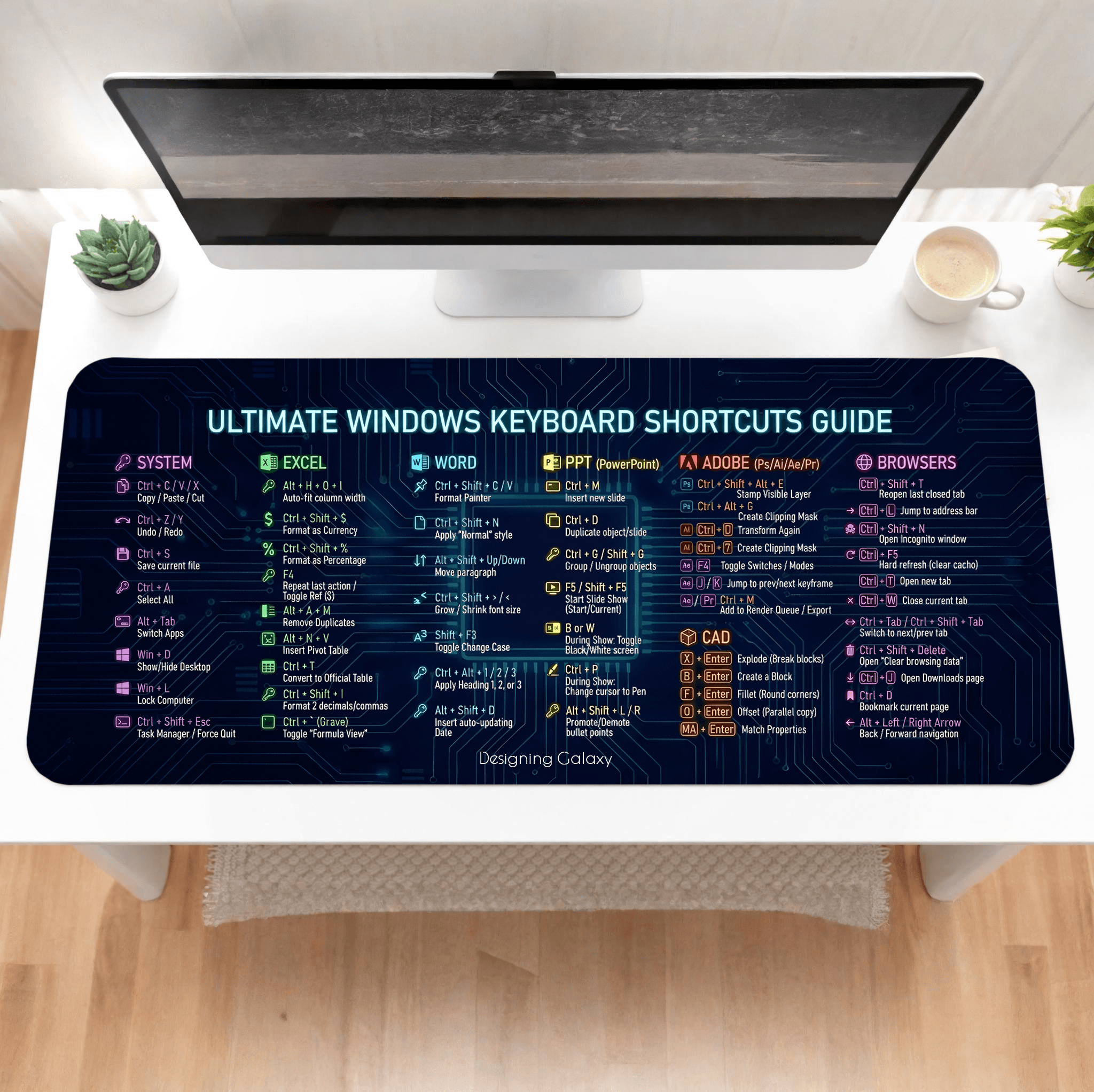 The shortcuts are neatly organized and easy to read, making it perfect for professionals, students, designers, developers, and anyone who spends long hours on a computer. It helps you work faster, reduce mistakes, and improve productivity without breaking your flow.