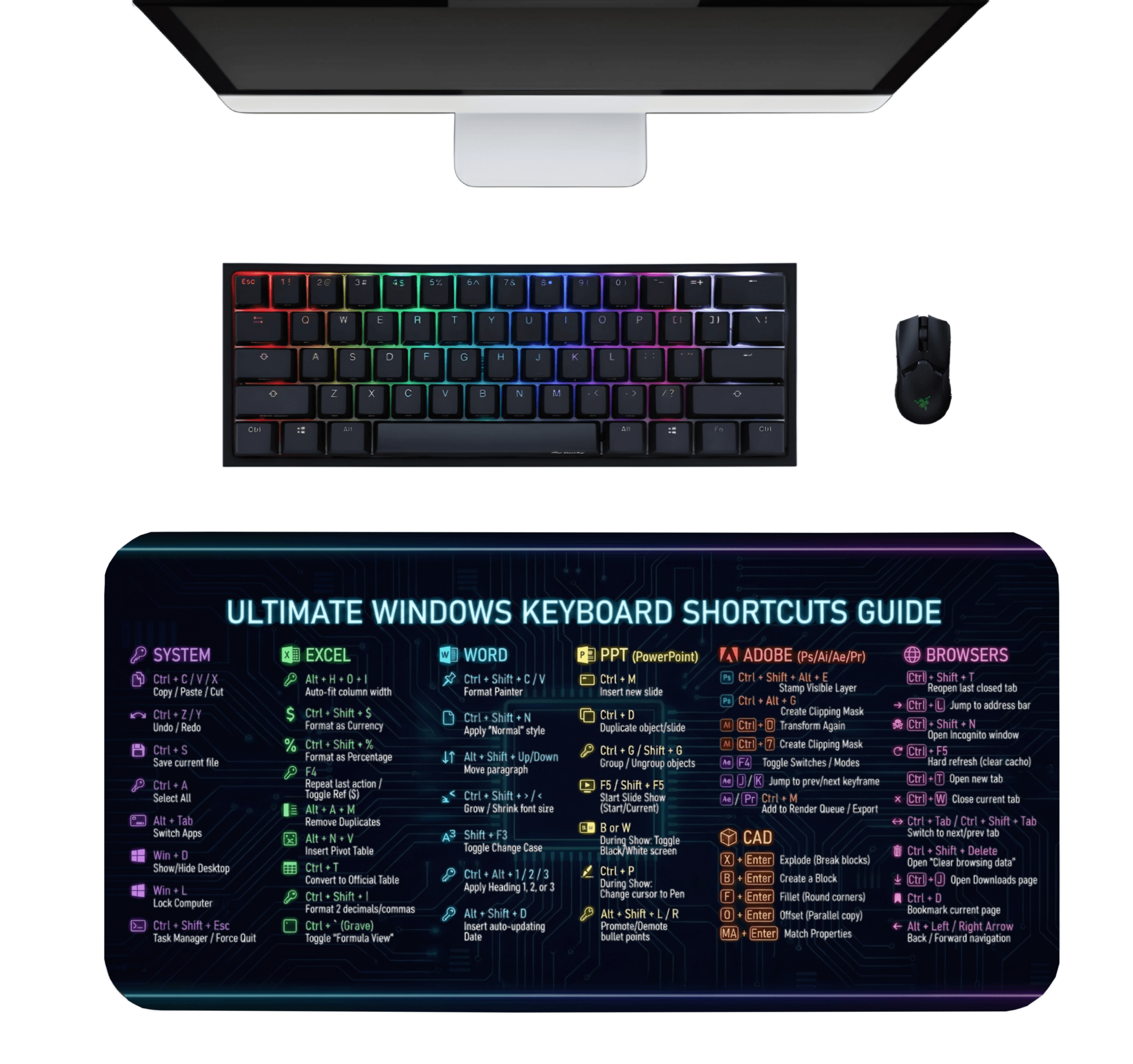 • What’s Included: 1x Ultimate Windows Keyboard Shortcuts XL Desk Mat Mousepad
